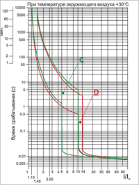 - Двигатели с большими пусковыми токами (подъемные механизмы, насосы) выключатели с характеристикой D.