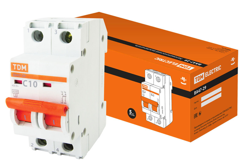 - Авт. выкл.ВА47-29 2Р 10А 4,5кА х-ка С TDM SQ0206-0091