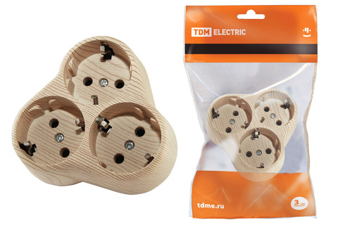 - Блок на 3 гнезда 2П+З круглый 16А 250B "Эко" (бук) TDM