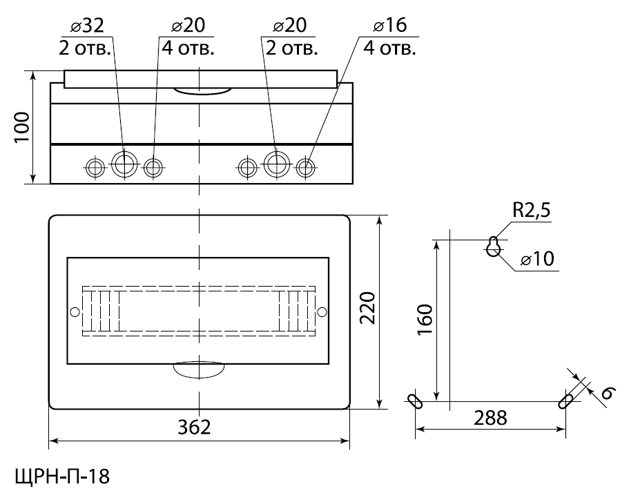 - Для ЩРН-П и ЩРН-П (Б) винты, дюбели и заглушки мест крепления.