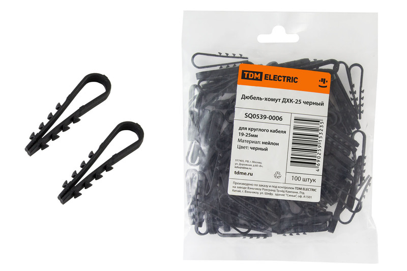 - Дюбель-хомут ДХК-25 для круглого кабеля 19-25мм нейлон черный (100шт) TDM SQ0539-0006