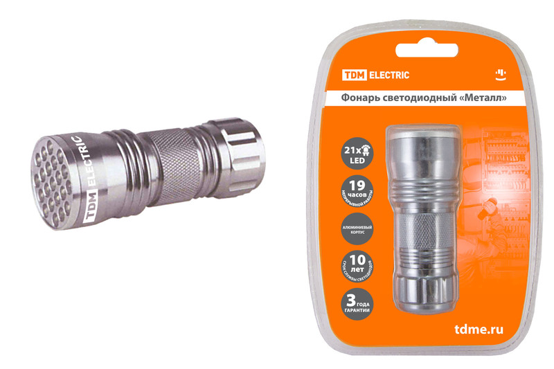- Фонарь светодиодный "Металл", 21 светодиод 63 лм/Вт, бат. 3*AAA TDM SQ0350-0013