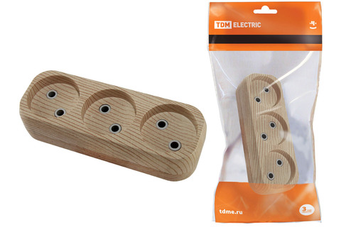 - Колодка розеточная 3 гнезда 2П б/з 10А 250В "Эко" (сосна) TDM