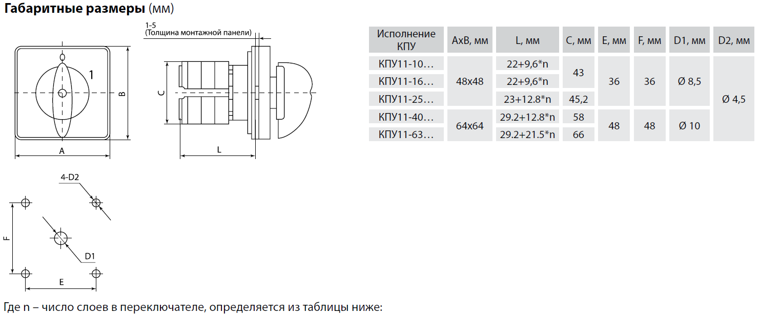 - Переключатель исполнения КПУ11 монтируется на переднюю панель щитка 4-мя болтами.