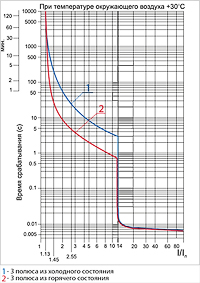 - Диапазон уставок теплового рацепителя. Уставка это величина тока в Амперах. Как правило, ее выставляют равной номинальному току двигателя или близко к нему. Расцепитель тепловой не разрывает цепь, пока сила тока в ней не достигнет 1.13 х ток уставки, что воспринимается аппаратом как перегрузка.