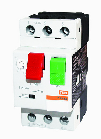 - Три вида защиты: от токов короткого замыкания, токов перегрузки и выпадения фазы, означает, что этот пускатель обеспечивает полную защиту нагрузки и не требует дополнительного использования теплового реле перегрузки. Т. е. пускатель ручной кнопочный ПРК конструктивно представляет собой автоматический выключатель с характеристикой D и тепловое реле перегрузки в одном корпусе.