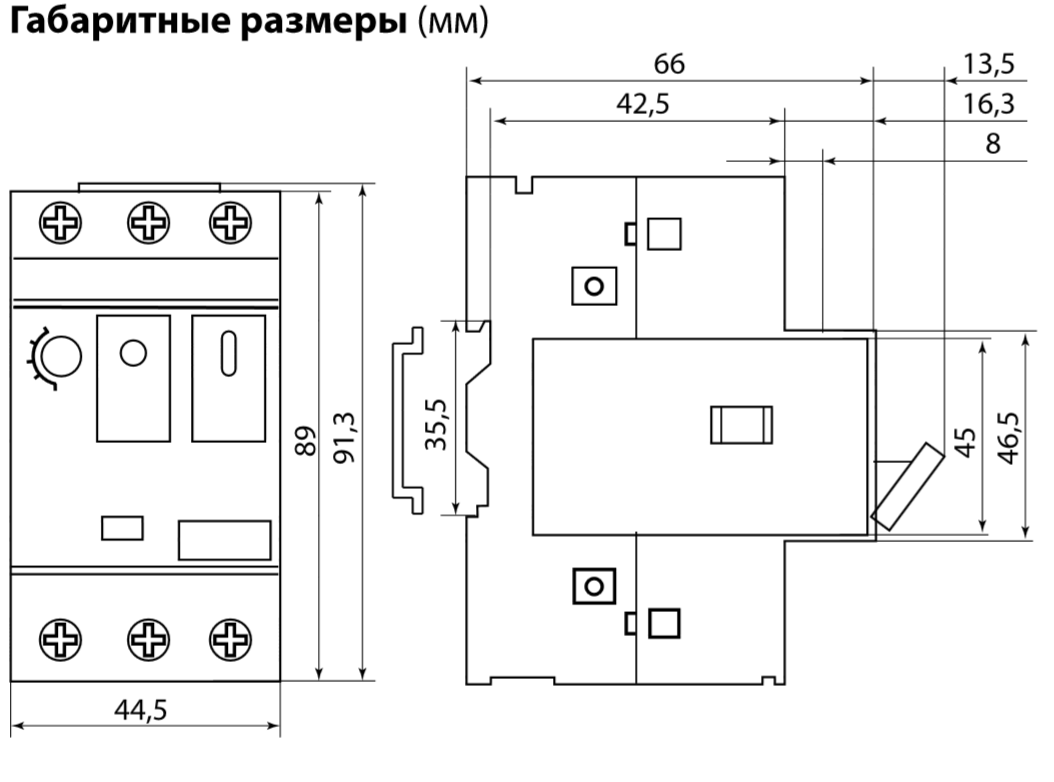 - Легкая проверка работоспособности пускателя одним нажатием на рычажок расцепления.