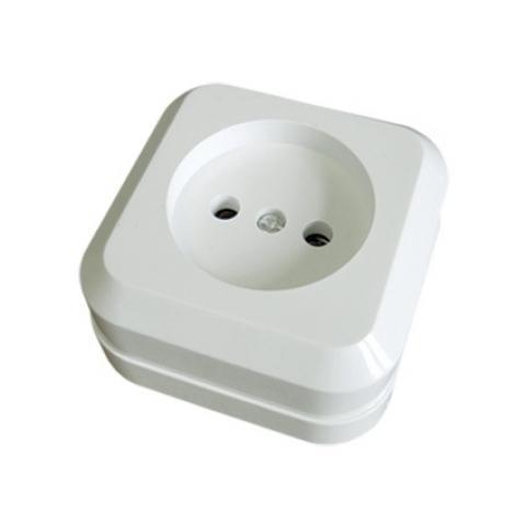 - Розетка 2П открытой установки с з/ш IP20 10А, белый "Ладога" TDM