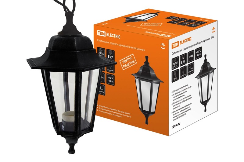 - Светильник садово-парковый НСУ 06-60-001 шестигранник, подвес, пластик, черный TDM SQ0330-0703