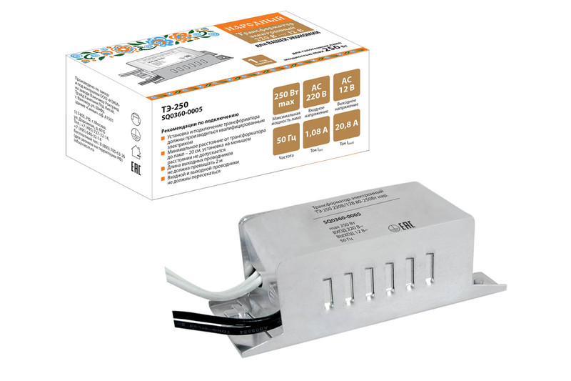 - Трансформатор электронный ТЭ-250 220В/12В 80-250Вт нар. SQ0360-0005