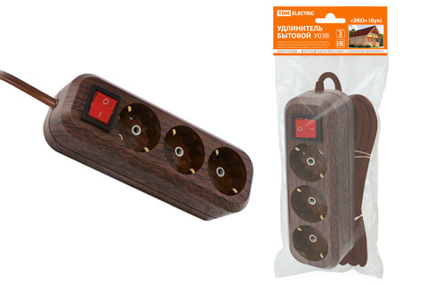 - Удлинитель бытовой У03В выключатель, 3 гнезда, 5метров,2П+3, ПВС 3х1мм2 "Эко" (бук) 16А/250В TDM