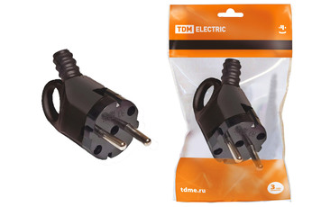 - Вилка угловая с ушком с/з черная 16А 250В TDM SQ1806-0006