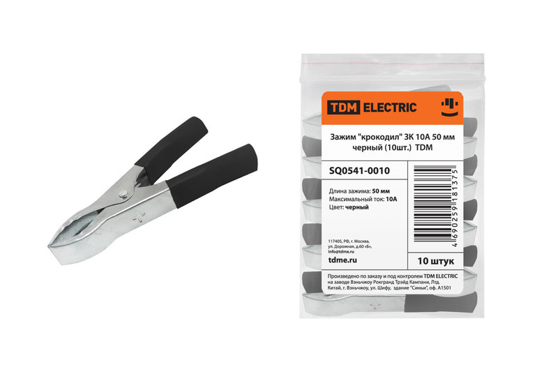 - Зажим "крокодил" ЗК 10А 50мм черный (10шт) TDM SQ0541-0010