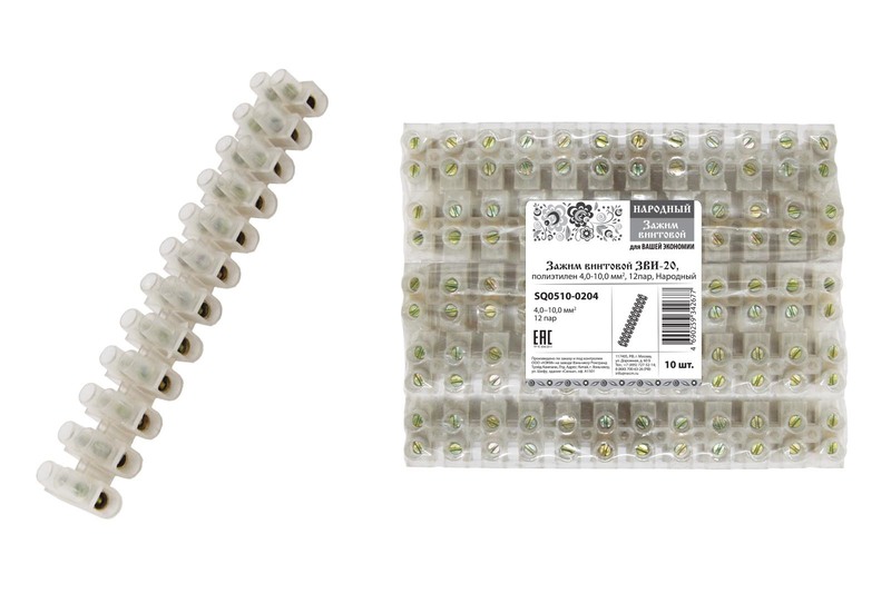 - Зажим винтовой ЗВИ-20, полиэтилен 4,0-10,0 мм2, 12пар, Народный SQ0510-0204